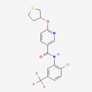 N-(2-chloro-5-(trifluoromethyl)phenyl)-6-((tetrahydrothiophen-3-yl)oxy)nicotinamide is a compound that has garnered attention in medicinal chemistry due to its potential therapeutic applications. This article explores its biological activity, focusing on mechanisms of action, efficacy in various biological models, and safety profiles based on recent research findings.
