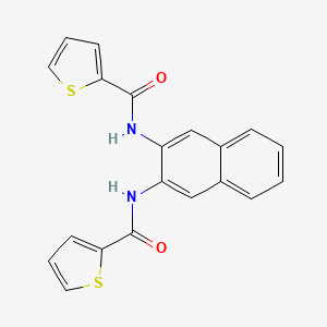 The mechanism of action of N-[3-(THIOPHENE-2-AMIDO)NAPHTHALEN-2-YL]THIOPHENE-2-CARBOXAMIDE involves its interaction with specific molecular targets and pathways. The compound can bind to proteins, enzymes, or receptors, altering their activity and leading to various biological effects. The exact molecular targets and pathways depend on the specific application and context in which the compound is used.