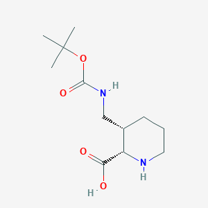 The mechanism of action of rac-(2R,3R)-3-({[(tert-butoxy)carbonyl]amino}methyl)piperidine-2-carboxylicacid involves its interaction with specific molecular targets. The compound may act as an inhibitor or activator of certain enzymes, affecting biochemical pathways and cellular processes. The exact molecular targets and pathways involved depend on the specific application and context in which the compound is used.