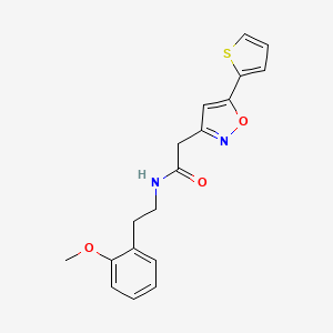 InChI=1S/C18H18N2O3S/c1-22-15-6-3-2-5-13(15)8-9-19-18(21)12-14-11-16(23-20-14)17-7-4-10-24-17/h2-7,10-11H,8-9,12H2,1H3,(H,19,21) | |
