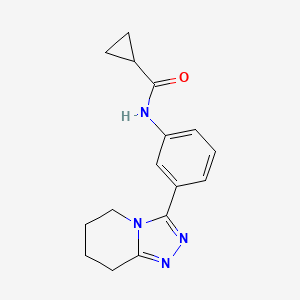 The synthesis of N-(3-{5H,6H,7H,8H-[1,2,4]triazolo[4,3-a]pyridin-3-yl}phenyl)cyclopropanecarboxamide typically involves multiple steps, starting from commercially available reagents. One common synthetic route includes the following steps:
