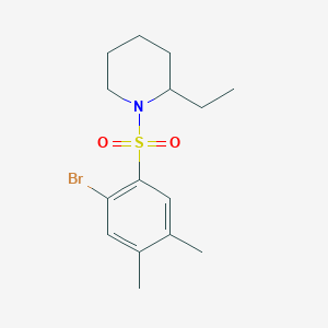 The mechanism by which 1-(2-Bromo-4,5-dimethylbenzenesulfonyl)-2-ethylpiperidine exerts its effects involves interactions with specific molecular targets and pathways. The bromine and sulfonyl groups play crucial roles in its reactivity and binding affinity to biological targets. These interactions can modulate enzyme activities, receptor functions, and cellular signaling pathways, leading to various biological effects .