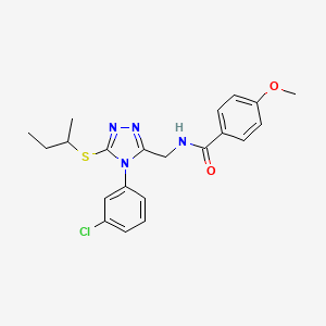 N-{[5-(butan-2-ylsulfanyl)-4-(3-chlorophenyl)-4H-1,2,4-triazol-3-yl]methyl}-4-methoxybenzamide is a complex organic compound that has garnered interest for its potential biological activities. This compound belongs to the triazole class, which is known for various pharmacological properties including anti-inflammatory, antimicrobial, and anticancer activities.