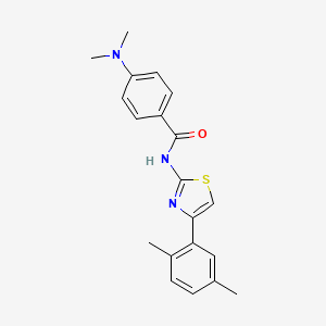 The synthesis of 4-(dimethylamino)-N-[4-(2,5-dimethylphenyl)-1,3-thiazol-2-yl]benzamide typically involves multi-step organic reactions. One common method includes the following steps: