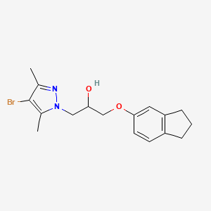 1-(4-Bromo-3,5-dimethyl-pyrazol-1-yl)-3-(indan-5-yloxy)-propan-2-ol is unique due to the presence of the bromine atom, which can influence its reactivity and interactions. The combination of the pyrazole ring, indan-5-yloxy group, and propan-2-ol moiety provides a distinct chemical profile that can be exploited for various applications.