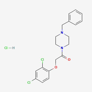 1-(4-benzylpiperazin-1-yl)-2-(2,4-dichlorophenoxy)ethanone hydrochloride is a synthetic compound belonging to the piperazine class, which has garnered attention for its potential pharmacological activities. This compound is structurally related to other piperazine derivatives that exhibit a variety of biological effects, including interactions with neurotransmitter receptors and enzyme inhibition.