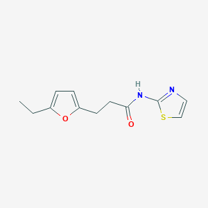 The mechanism of action of 3-(5-Ethyl-furan-2-yl)-N-thiazol-2-yl-propionamide involves its interaction with various molecular targets. The furan and thiazole rings can interact with enzymes and receptors, potentially inhibiting or modulating their activity. This interaction can lead to various biological effects, such as antimicrobial or anticancer activity .