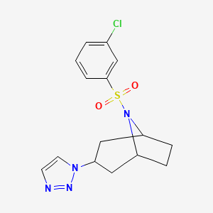 InChI=1S/C15H17ClN4O2S/c16-11-2-1-3-15(8-11)23(21,22)20-12-4-5-13(20)10-14(9-12)19-7-6-17-18-19/h1-3,6-8,12-14H,4-5,9-10H2 | |