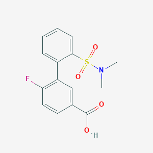 The mechanism of action of 3-(2-N,N-Dimethylsulfamoylphenyl)-4-fluorobenzoic acid involves its interaction with specific molecular targets. The sulfonamide group can form hydrogen bonds with active sites of enzymes, potentially inhibiting their activity. The fluorine atom may enhance the compound’s binding affinity and stability, while the benzoic acid moiety can participate in various biochemical pathways.