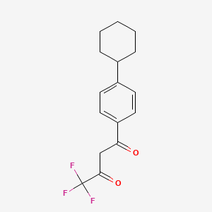 Synthetic Routes and Reaction Conditions: The synthesis of 1-(4-cyclohexylphenyl)-4,4,4-trifluorobutane-1,3-dione typically involves the reaction of 4-cyclohexylbenzaldehyde with trifluoroacetic anhydride in the presence of a base such as pyridine. The reaction proceeds through the formation of an intermediate, which is subsequently converted to the desired product under controlled conditions .