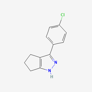 The synthesis of 3-(4-Chlorophenyl)-2,4,5,6-tetrahydrocyclopenta[c]pyrazole typically involves the cyclization of appropriate precursors under specific conditions. One common method involves the reaction of 4-chlorophenylhydrazine with cyclopentanone in the presence of an acid catalyst. The reaction proceeds through the formation of a hydrazone intermediate, which then undergoes cyclization to form the desired pyrazole derivative .