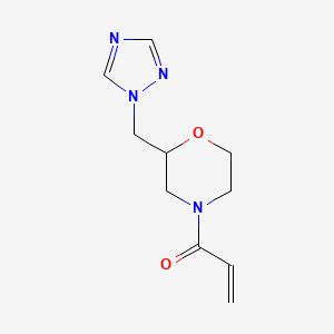 1-{2-[(1H-1,2,4-triazol-1-yl)methyl]morpholin-4-yl}prop-2-en-1-one is a compound that features a 1,2,4-triazole ring and a morpholine ring connected by a prop-2-en-1-one linker. The presence of the 1,2,4-triazole ring is significant due to its widespread use in pharmaceuticals, agrochemicals, and materials science . This compound is of interest due to its potential biological activities and applications in various fields.