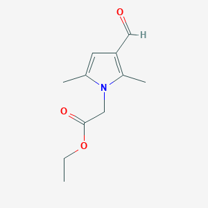 The synthesis of ethyl 2-(3-formyl-2,5-dimethyl-1H-pyrrol-1-yl)acetate typically involves the condensation of 2,5-dimethylpyrrole with ethyl acetoacetate in the presence of a suitable catalyst. The reaction is carried out under reflux conditions, and the product is purified through recrystallization or column chromatography.