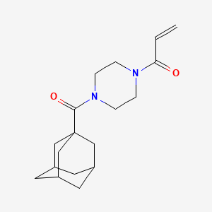 1-[4-(Adamantane-1-carbonyl)piperazin-1-yl]prop-2-en-1-one is a compound that combines the structural features of adamantane, piperazine, and prop-2-en-1-one. Adamantane is known for its rigid, diamond-like structure, which imparts unique physical and chemical properties to its derivatives. Piperazine is a versatile heterocyclic compound commonly used in pharmaceuticals, while prop-2-en-1-one is a reactive enone group that can participate in various chemical reactions.