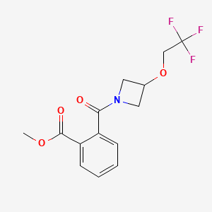 The synthesis of this compound typically involves multi-step organic reactions. The azetidine ring can be synthesized using methods such as the Paternò–Büchi reaction, followed by the introduction of the trifluoroethoxy group and subsequent esterification to form the benzoate.