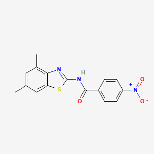 The synthesis of N-(4,6-dimethyl-1,3-benzothiazol-2-yl)-4-nitrobenzamide typically involves the reaction of 4,6-dimethyl-2-aminobenzothiazole with 4-nitrobenzoyl chloride. The reaction is carried out in the presence of a base, such as triethylamine, in an organic solvent like dichloromethane. The reaction mixture is stirred at room temperature for several hours, followed by purification through recrystallization or column chromatography to obtain the desired product.