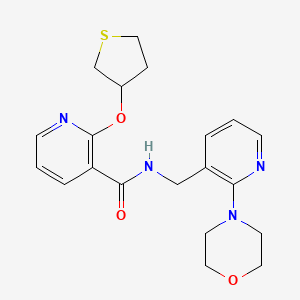 The mechanism of action of N-((2-morpholinopyridin-3-yl)methyl)-2-((tetrahydrothiophen-3-yl)oxy)nicotinamide involves its interaction with specific molecular targets, such as enzymes or receptors. The compound may inhibit or activate these targets, leading to a cascade of biochemical events that result in its therapeutic effects. The exact pathways and molecular interactions depend on the specific application and target.
