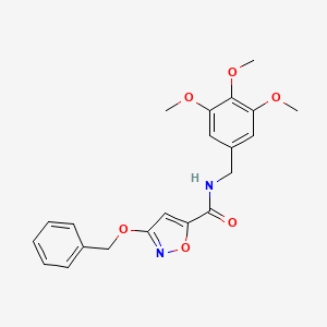The mechanism of action of 3-(benzyloxy)-N-(3,4,5-trimethoxybenzyl)isoxazole-5-carboxamide would depend on its specific biological target. Generally, it might interact with enzymes or receptors, modulating their activity and leading to various biological effects. The molecular targets and pathways involved would need to be elucidated through experimental studies.