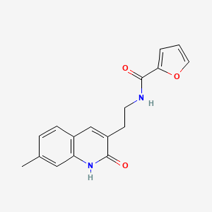 N-[2-(7-methyl-2-oxo-1,2-dihydroquinolin-3-yl)ethyl]furan-2-carboxamide is a synthetic compound that belongs to the class of quinoline derivatives. These compounds are known for their diverse biological activities and have been extensively studied for their potential applications in medicinal chemistry. The unique structure of this compound, which includes a quinoline moiety and a furan carboxamide group, makes it an interesting subject for research in various scientific fields.