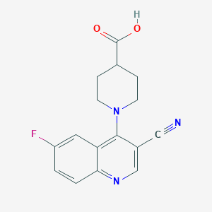 Synthetic Routes and Reaction Conditions: The synthesis of 1-(3-Cyano-6-fluoroquinolin-4-yl)piperidine-4-carboxylic acid typically involves multiple steps, starting with the construction of the quinoline core. The piperidine ring is then attached through nucleophilic substitution reactions.