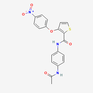 The mechanism by which N-(4-acetamidophenyl)-3-(4-nitrophenoxy)thiophene-2-carboxamide exerts its effects involves interactions with specific molecular targets. These interactions can modulate biological pathways, leading to the desired therapeutic or industrial outcomes. The exact molecular targets and pathways involved may vary depending on the specific application and context.