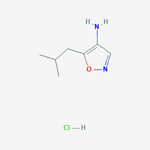 5-(2-Methylpropyl)-1,2-oxazol-4-amine hydrochloride is an oxazole derivative characterized by a 1,2-oxazole core substituted with a 2-methylpropyl (isobutyl) group at position 5 and an amine group at position 4. The hydrochloride salt enhances its solubility in polar solvents, making it suitable for synthetic and pharmaceutical applications.