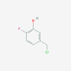 5-(Chloromethyl)-2-fluoro-phenol is a halogenated phenolic compound characterized by a chloromethyl (-CH₂Cl) group at the 5-position and a fluorine atom at the 2-position of the phenol ring. This dual substitution confers unique physicochemical properties, including enhanced electrophilicity due to the electron-withdrawing fluorine and the reactive chloromethyl group, which is prone to nucleophilic substitution reactions. Such structural features make it valuable in organic synthesis, particularly in the development of pharmaceuticals, agrochemicals, and functional materials . For example, its chloromethyl group can undergo alkylation or nucleophilic displacement with alcohols, amines, or thiols to generate diverse derivatives, as demonstrated in the synthesis of alkoxymethyl-salicylaldehydes . The fluorine atom, meanwhile, may influence electronic effects, acidity (pKa), and metabolic stability compared to non-fluorinated analogs .