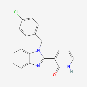 The synthesis of 3-[1-(4-chlorobenzyl)-1H-1,3-benzimidazol-2-yl]-2(1H)-pyridinone typically involves multiple steps, starting with the formation of the benzimidazole core. One common approach is the condensation of o-phenylenediamine with 4-chlorobenzaldehyde under acidic conditions. The resulting benzimidazole intermediate is then reacted with a suitable pyridinone precursor to form the final product.