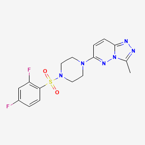 The compound 6-(4-((2,4-Difluorophenyl)sulfonyl)piperazin-1-yl)-3-methyl-[1,2,4]triazolo[4,3-b]pyridazine is a synthetic molecule with significant potential in medicinal chemistry. Its structure includes a [1,2,4]triazolo[4,3-b]pyridazine core that has been associated with various biological activities, particularly in the context of cancer research and neuropharmacology.