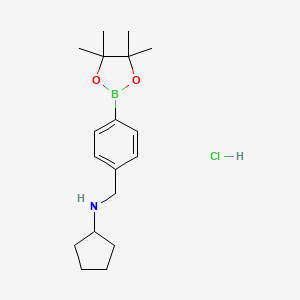 4-(N-Cyclopentylaminomethyl)phenylboronic acid, pinacol ester, HCl is a chemical compound with significant applications in scientific research, particularly in the fields of chemistry, biology, and medicine. This compound is known for its unique structure, which includes a phenylboronic acid moiety, a cyclopentylamine group, and a pinacol ester group, making it a versatile reagent in various chemical reactions.
