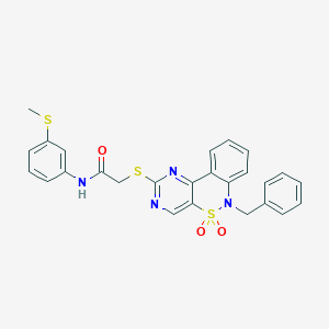 2-({9-benzyl-8,8-dioxo-8lambda6-thia-3,5,9-triazatricyclo[8.4.0.0^{2,7}]tetradeca-1(14),2(7),3,5,10,12-hexaen-4-yl}sulfanyl)-N-[3-(methylsulfanyl)phenyl]acetamide