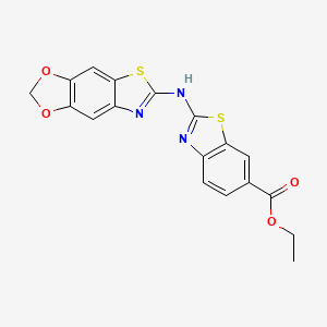 InChI=1S/C18H13N3O4S2/c1-2-23-16(22)9-3-4-10-14(5-9)26-17(19-10)21-18-20-11-6-12-13(25-8-24-12)7-15(11)27-18/h3-7H,2,8H2,1H3,(H,19,20,21) | |