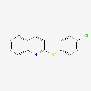 4-Chlorophenyl 4,8-dimethyl-2-quinolinyl sulfide is an organic compound with the molecular formula C17H14ClNS. It is characterized by a quinoline ring that is substituted with a 4-chlorophenyl group and two methyl groups at positions 4 and 8. This compound has garnered attention due to its potential biological activities, particularly in the fields of antimicrobial and anticancer research.