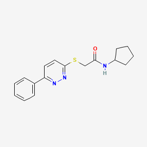 Synthetic Routes and Reaction Conditions: The synthesis of N-cyclopentyl-2-[(6-phenylpyridazin-3-yl)sulfanyl]acetamide typically involves the reaction of cyclopentylamine with 2-bromoacetyl chloride to form N-cyclopentyl-2-bromoacetamide. This intermediate is then reacted with 6-phenylpyridazine-3-thiol under basic conditions to yield the target compound. The reaction conditions often include the use of solvents such as dichloromethane or tetrahydrofuran, and bases like triethylamine or sodium hydride .