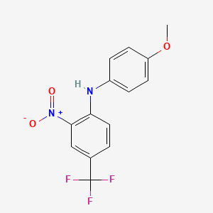 The synthesis of N-(4-methoxyphenyl)-2-nitro-4-(trifluoromethyl)aniline typically involves a multi-step process. One common method includes the nitration of 4-methoxyaniline to introduce the nitro group, followed by the introduction of the trifluoromethyl group through a suitable trifluoromethylation reaction. The final step involves coupling the intermediate with an appropriate aniline derivative under controlled conditions.