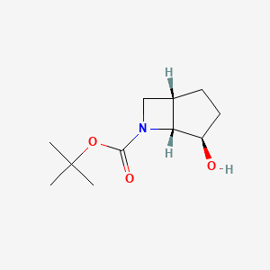 The synthesis of exo-4-Hydroxy-6-aza-bicyclo[3.2.0]heptane-6-carboxylic acid tert-butyl ester typically involves multiple steps, starting from simpler precursors. One common approach is the cyclization of a suitable precursor followed by esterification. The reaction conditions often require the use of strong bases or acids, and the process may involve high temperatures to drive the reactions to completion.