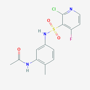 Synthetic Routes and Reaction Conditions: The synthesis of N-[5-(2-chloro-4-fluoropyridine-3-sulfonamido)-2-methylphenyl]acetamide typically involves multiple steps, starting with the preparation of the core pyridine ring The initial step may include the halogenation of pyridine to introduce chlorine and fluorine atoms at specific positions on the ring