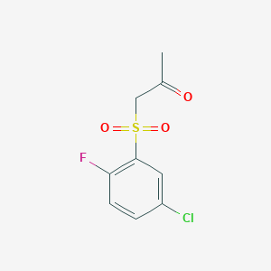 The mechanism of action of 1-(5-chloro-2-fluorobenzenesulfonyl)propan-2-one involves its interaction with specific molecular targets. The sulfonyl group can act as an electrophile, reacting with nucleophiles in biological systems. This interaction can lead to the inhibition or activation of certain enzymes or pathways, depending on the specific context .