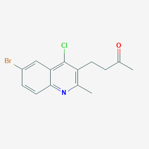 The mechanism of action of 4-(6-Bromo-4-chloro-2-methylquinolin-3-yl)butan-2-one is not fully understood, but it is believed to interact with various molecular targets and pathways. In biological systems, quinoline derivatives are known to inhibit enzymes such as DNA gyrase and topoisomerase, which are essential for DNA replication and cell division. This inhibition can lead to the death of microbial cells or the suppression of cancer cell growth .