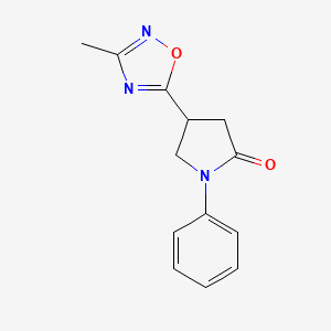 4-(3-Methyl-1,2,4-oxadiazol-5-yl)-1-phenylpyrrolidin-2-one is unique due to its specific structural features, which confer distinct chemical and biological properties. Its combination of the oxadiazole and pyrrolidinone rings provides a versatile scaffold for the development of new bioactive molecules and materials .