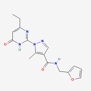 1-(4-ethyl-6-oxo-1,6-dihydropyrimidin-2-yl)-N-[(furan-2-yl)methyl]-5-methyl-1H-pyrazole-4-carboxamide is a complex organic compound that features a unique combination of pyrimidine, pyrazole, and furan moieties