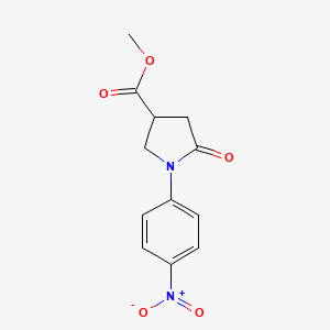 Synthetic Routes and Reaction Conditions: The synthesis of Methyl 1-(4-nitrophenyl)-5-oxopyrrolidine-3-carboxylate typically involves the reaction of 4-nitrobenzaldehyde with pyrrolidine-2,5-dione in the presence of a suitable catalyst. The reaction proceeds through a condensation mechanism, followed by esterification to yield the final product. Common reaction conditions include the use of solvents such as ethanol or methanol, and the reaction is often carried out at elevated temperatures to ensure complete conversion.