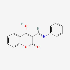 4-Hydroxy-3-[(E)-(phenylimino)methyl]-2H-chromen-2-one, also known as a coumarin derivative, is a synthetic organic compound with the molecular formula C16H11NO3. This compound has garnered attention in the field of medicinal chemistry due to its diverse biological activities, including potential anti-inflammatory, antimicrobial, and anticancer properties. The following sections detail its synthesis, biological activities, mechanisms of action, and relevant case studies.