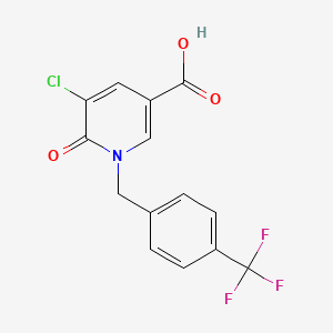This compound is a pyridinecarboxylic acid derivative featuring a chloro substituent at position 5, a 6-oxo group, and a 4-(trifluoromethyl)benzyl moiety at position 1. Its molecular formula is C₁₄H₉ClF₃NO₃, with a molecular weight of 331.68 g/mol (CAS: 339024-06-5, MDL: MFCD00140108) . The trifluoromethyl (CF₃) group enhances lipophilicity and metabolic stability, making it a candidate for pharmaceutical and agrochemical applications.
