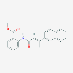 The mechanism of action of (E)-methyl 2-(3-(naphthalen-2-yl)but-2-enamido)benzoate involves its interaction with specific molecular targets. The compound can bind to enzymes or receptors, modulating their activity and influencing various biological pathways. For example, it may inhibit the activity of certain enzymes involved in cell proliferation, leading to potential anticancer effects. The exact molecular targets and pathways depend on the specific application and context of use.