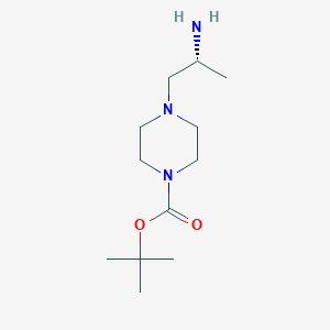 (R)-4-(2-Amino-propyl)-piperazine-1-carboxylic acid tert-butyl ester, also known as R-APPC, is a chemical compound with a piperazine ring that is explored for its versatile applications across chemistry, biology, medicine, and industry. Its unique stereochemistry and structure allow for selective binding in biological pathways, enabling its use in developing new drugs and biochemical assays.