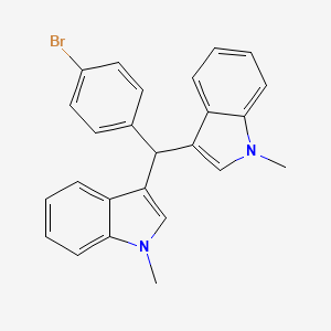 The synthesis of 1H-Indole, 3,3’-[(4-bromophenyl)methylene]bis[1-methyl-] typically involves the condensation of indole derivatives with bromophenyl compounds. One common method includes the Fischer indole synthesis, where phenylhydrazine reacts with ketones or aldehydes under acidic conditions to form the indole core . Industrial production methods often utilize catalytic processes to enhance yield and purity, ensuring the compound’s availability for research and application .