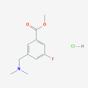 The mechanism of action of Methyl 3-((dimethylamino)methyl)-5-fluorobenzoate hydrochloride involves its interaction with specific molecular targets. The dimethylamino group can participate in hydrogen bonding and electrostatic interactions, while the fluorine atom can enhance the compound’s lipophilicity and metabolic stability. These interactions can modulate the activity of enzymes and receptors, leading to various biological effects.