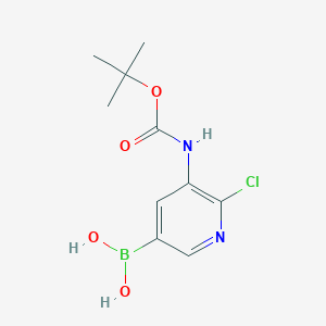 The mechanism of action of 3-(t-Butoxycarbonylamino)-2-chloropyridine-5-boronic acid involves its reactivity as a boronic acid derivative. Boronic acids can form reversible covalent bonds with diols and other nucleophiles, making them useful in various chemical transformations. The tert-butoxycarbonylamino group serves as a protecting group for the amine, allowing selective reactions to occur at other functional groups.
