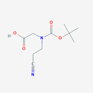 The mechanism by which 2-((tert-Butoxycarbonyl)(2-cyanoethyl)amino)acetic acid exerts its effects involves the stabilization of the amine group through the formation of a carbamate. The Boc group is added to the amine via nucleophilic addition-elimination, forming a tetrahedral intermediate. The elimination step expels a carbonate ion, which can deprotonate the amine or undergo spontaneous decarboxylation . This process protects the amine group from unwanted reactions, allowing for selective transformations of other functional groups.